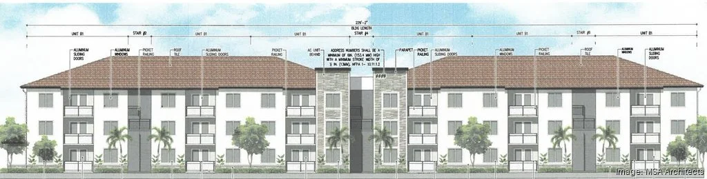 • The developer plans to build 72 new two-bedroom units across two three-story buildings.